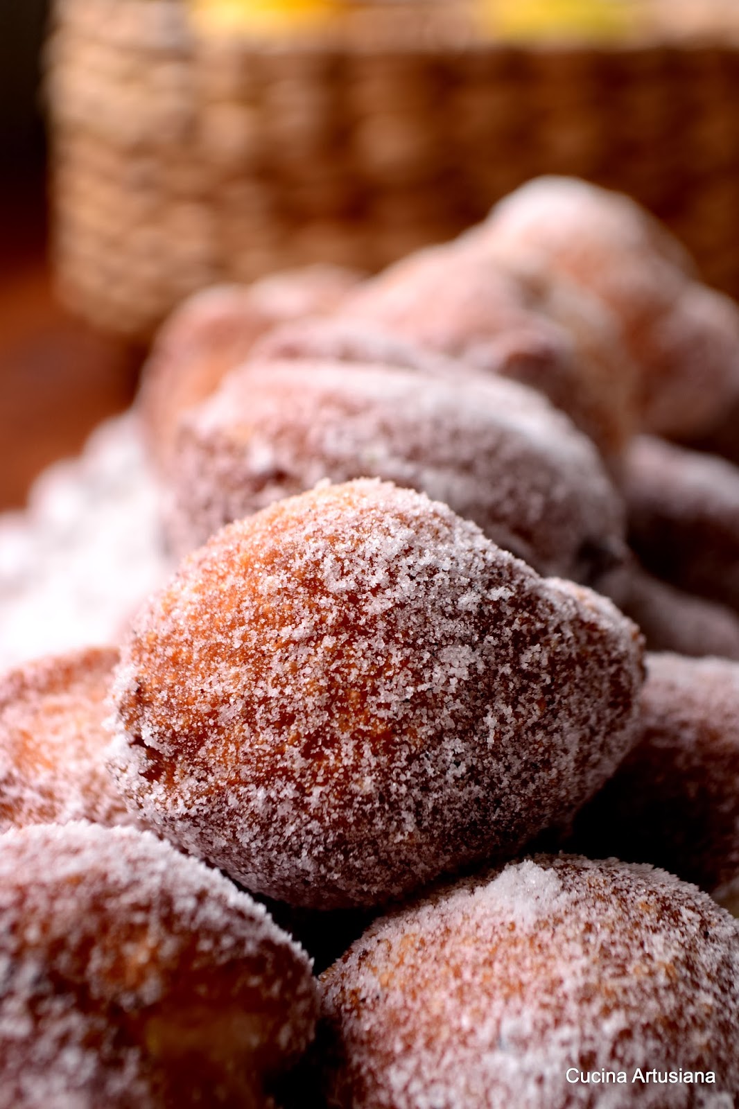 Frite em óleo quente até ficarem dourados, escorra-os em papel absorvente e passe-os no açúcar refinado.